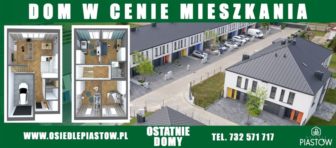 Kameralne i bezpieczne Osiedle Piastów składa się z 28 domów z czego 26 jest już sprzedanych i zamieszkałych. Osiedle świetnie funkcjonuje. Mieszkańcy są bardzo zadowoleni z jakości wykonania domów i lokalizacji. W ofercie 2 ostatnie domy.