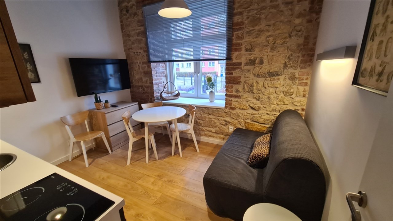 Pełne umeblowanie mieszkania, kuchnia ze sprzętem AGD- płyta, piekarnik, zmywarka, lodówka.