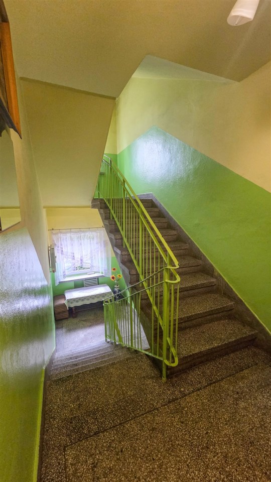 Dom posiada trzy kondygnacje oraz wewnętrzną klatkę schodową.