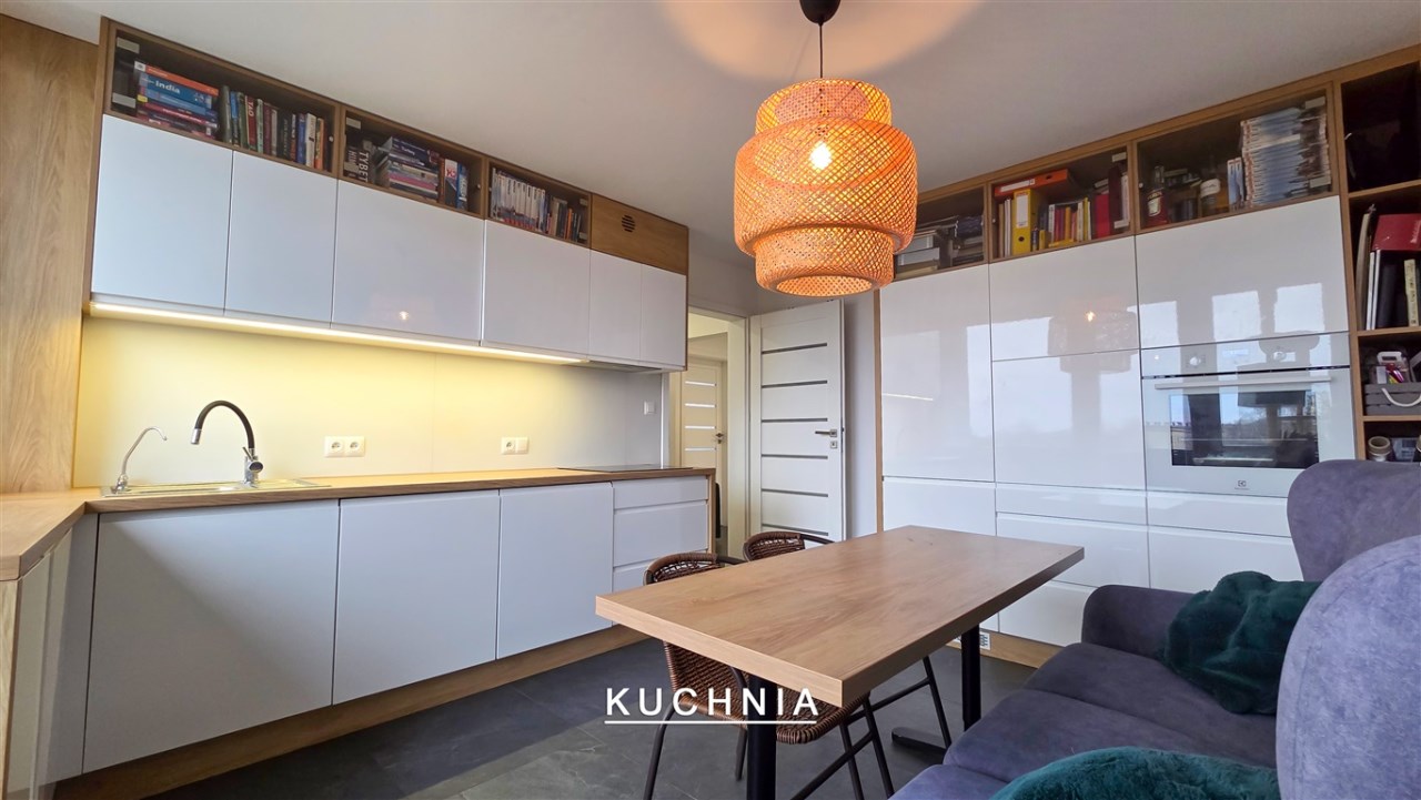 W kuchni meble na wymiar wraz ze sprzętem AGD.