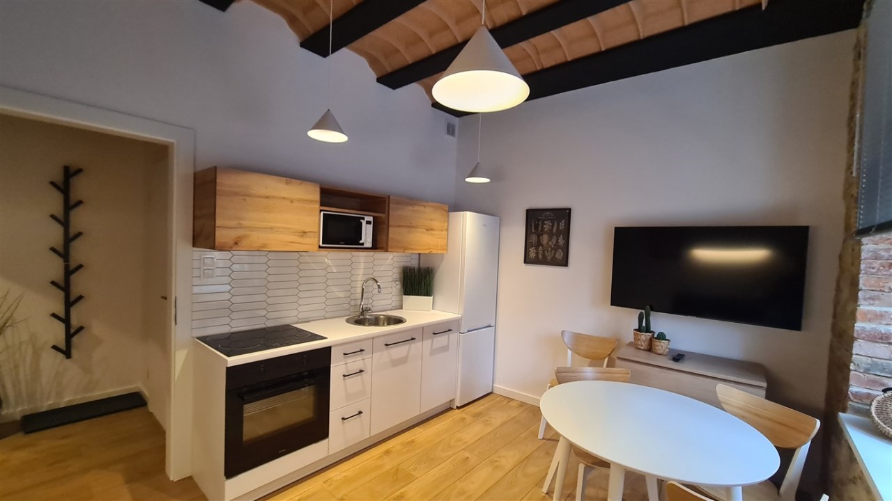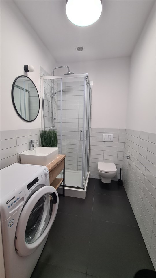 Pełne umeblowanie mieszkania, kuchnia ze sprzętem AGD- płyta, piekarnik, zmywarka, lodówka.