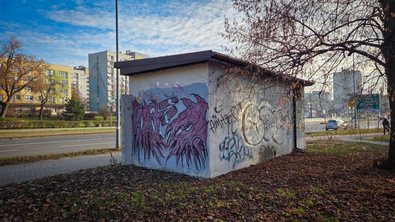 Pawilon w sąsiedztwie Uniwersytetu Jana Długosza- ciąg pieszy studentów.